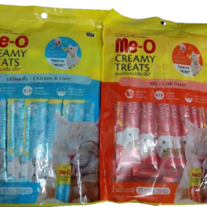 Me-O Cat Creamy Treats – 300 Grams (15 Gms X 20 Pcs In Each Pack) – Pack Of 2 (1 Crab/1 Chicken & Liver) For All Life Stages
